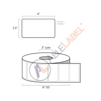 Product Name 4x2.5 Inch White Thermal Transfer Label Perfed On Roll 3 Inch Core 8 Inch Outside Diameter, 4 Rolls/Case 2400each/roll