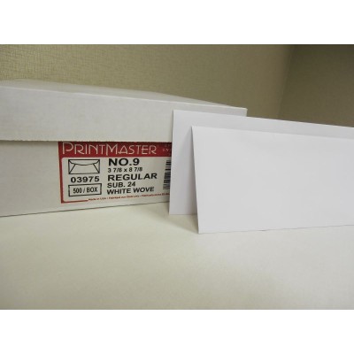 9 24# white wove regular printmaster (3-78x8-7/8) diagonal seam open side envelopes hard box, 5 box/carton, box/ 500 eps