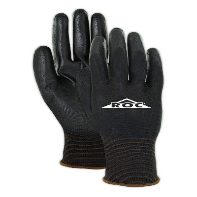 BP169 Size 9 Large Black Polyester Glove Shell With Polyurethane Black Coating 13 Gauge Roc Black Knit Glove, Case/20 Dozen MAGID GLOVE F981