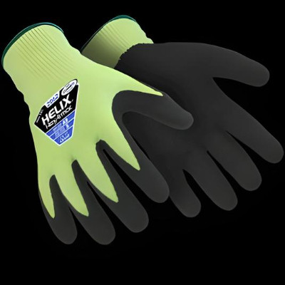 - 13 gauge green Hexarmor helix nitrile black coated palmcut resistant glove