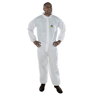 mp200 5x-large defender ii white microporous disposable coverall zipper front with flap & collar elastic at waist & ankles, 25 each/case